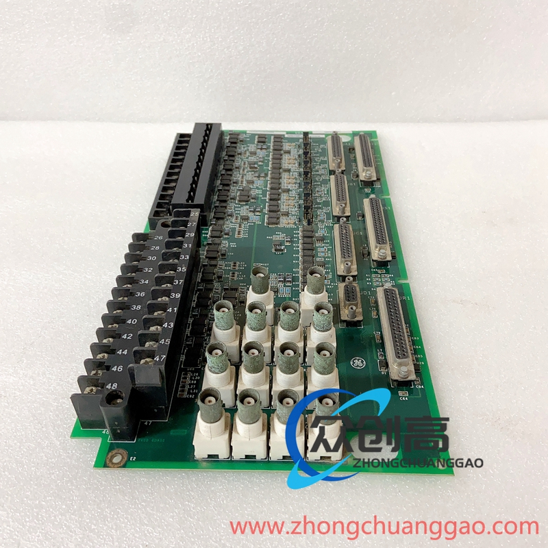 S200JPDSG1A配有两个端子板,每个端子板上有五个。这些标记为PR、PS,PT,N和N、端子板用于以花游形式连接配电板。该板有两个标记为P1和P2的50针带状连接器。这些带状连接器设计用于在电路板之间传输反馈信号,该板有一个标记为JA1的母连接器。这是一个与IS220PPDA上的I/0包兼容的DC-62连接器。板上的其它连接器包括7个2位插头、6个6位插头和3个9位插头