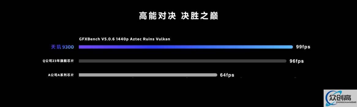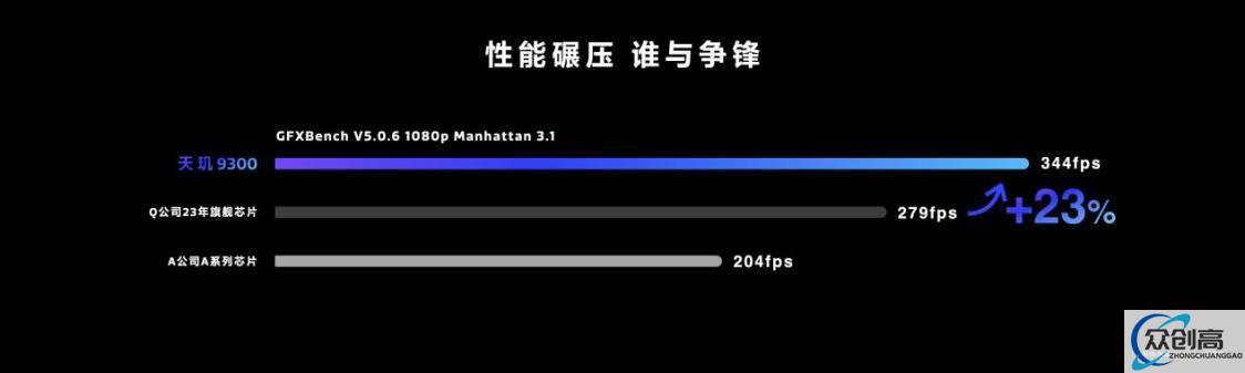 在最为检验GPU性能的 GFXBench测试中,天玑9300的Aztec 1440P测项成绩竟然高达 99帧,处于目前的旗舰巅峰水平。而在曼哈顿3.1测项中,天玑9300更是一骑绝尘,以344帧的惊人成绩领先友商23%以上,远远超过同代旗舰产品,是目前妥妥的GPU性能第一!