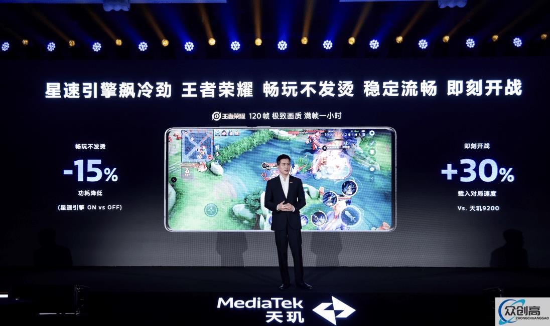 在星速引擎加持下,联发科与《王者荣耀》团队合作,携手实现120帧极致画质的稳定流畅体验。通过天玑9300的全局智能调控,可以让《王者荣耀》运行时的功耗降低15%,加载速度提升30%,减少等待即刻对局!