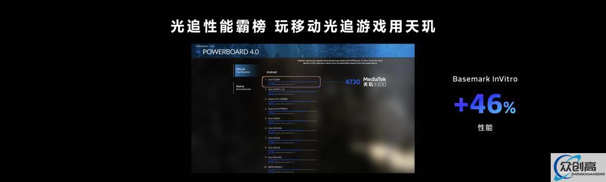 早在去年,联发科就率先实现了对移动端硬件光线追踪技术的支持,将绚烂、真实的光影体验带到移动端,缩小了移动端和PC端的游戏体验差距。如今,天玑9300搭载第二代硬件光线追踪引擎,在Basemark InVitro 光追性能测试中性能提升高达46%,光追性能第一再度霸榜。