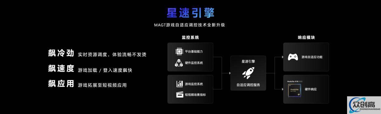 除了在硬件性能和游戏渲染技术上的惊艳创新,针对连接高流畅、高能效等APP关键体验指标,联发科将游戏自适应调控技术(MAGT)上全面升级为“星速引擎”。