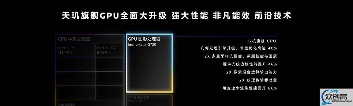 同时,天玑9300还可支持联发科全新的游戏倍帧技术,不仅能够进一步提升游戏显示的帧率,与传统GPU渲染相比,功耗还能降低25%,让用户能够享受到更加流畅、持久的游戏体验。
