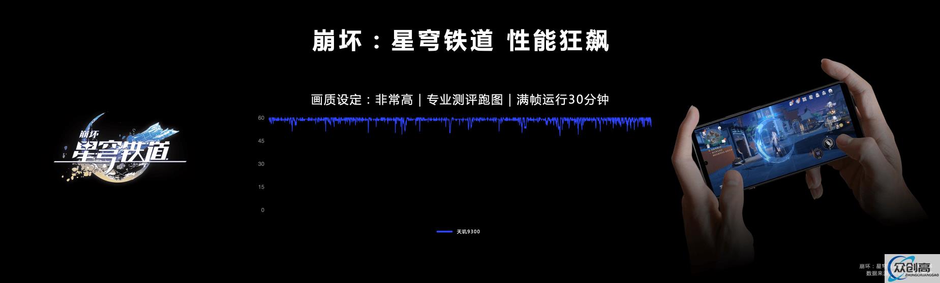 在负载更高的《崩坏:星穹铁道》非常高画质设置下,专业测评跑图测试30分钟,搭载天玑9300的终端平均帧率同样轻松60帧,足可见天玑9300的强悍游戏性能。足够强大的硬件,为天玑9300支持更加绚丽的渲染技术和特效提供了可靠的性能基底。